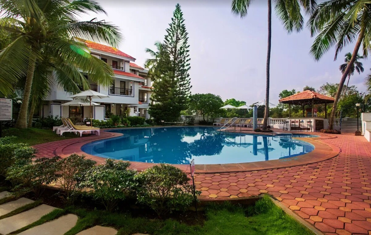 This 1BHK Duplex Apartment with 2 Full Bathrooms - part of Susegad Suites in Goa - is located in Riviera Hermitage - a part of the DoubleTree Hilton complex. The compound is ultra safe, with multiple layers of security (Hilton + Riviera), and features a large swimming pool surrounded by sprawling manicured lawns. 💡NOTICE: The pool is scheduled to be closed for renovation between 9th April and 30th April 2026. Do check out the discounted rates for this period! Let's start with the basics: