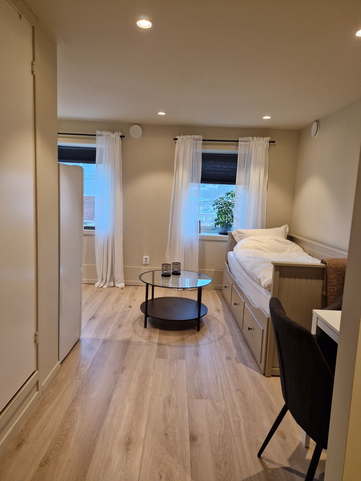 Stan se nalazi u centru Slettebakken v/Bybanen (laka željeznica), autobus i Sletten centar. Dobra baza za turističke doživljaje, učenje i poslovna putovanja. Kratka udaljenost do HVL-a, Haraldsplass-a i Univerzitetske bolnice Haukeland. - Novosti (nadograđeno 23. juna) - Svaki ulazak sa bravom sa šifrom - Kupatilo sa umivaonikom, WC tuš kabinom i podom - Uživajte u niši, dnevnom boravku i kuhinji sa trpezarijom - Predivan krevet 150x 200 - Frižider, ploča za kuvanje, šporet i oprema. - Trpezarija sa barskim stolicama - Internet i pametni TV Besplatan parking na ulici