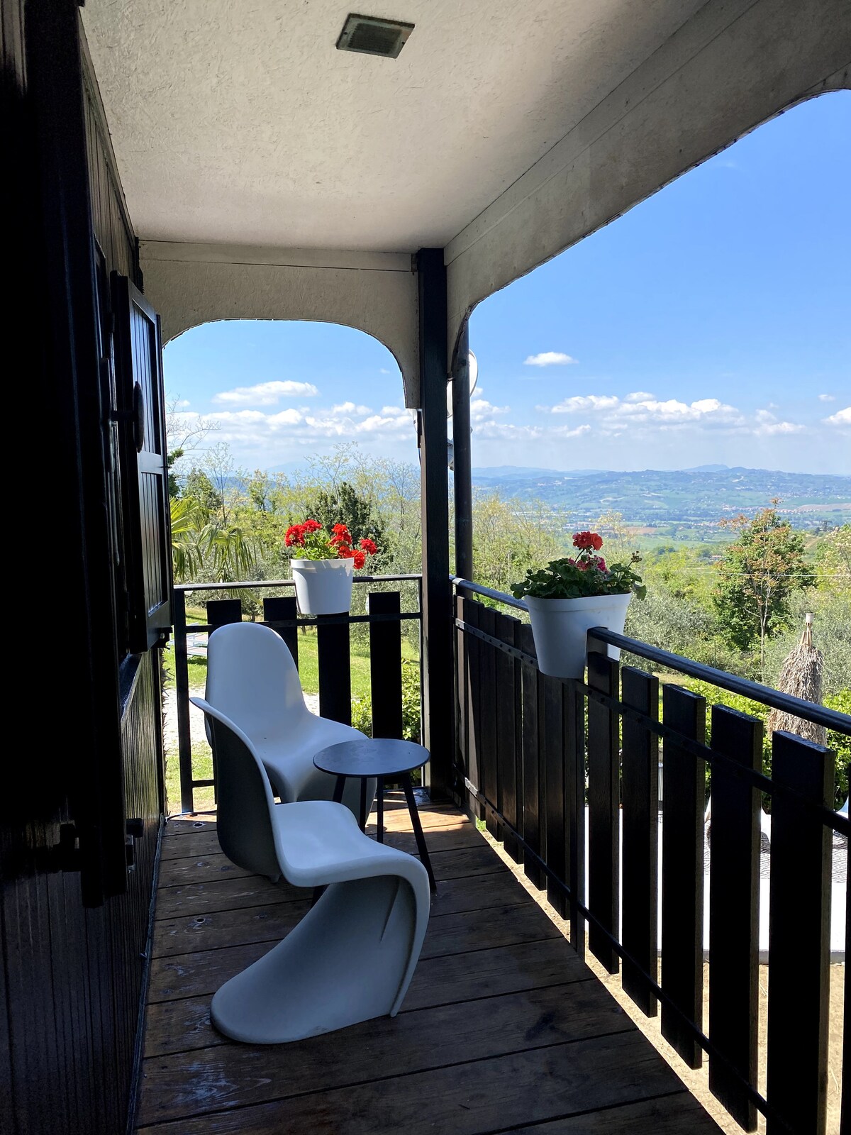 Vila sa pogledom na more, izlazak sunca se može videti iz svake sobe, a sunce ljušti dnevni boravak, velike palme i masline. Pet nezavisnih soba za 7 kreveta koji mogu da postanu do 10 ako je potrebno. Hiljadu kvadratnih metara nezavisne i ograđene bašte. Velika terasa za letnju večeru. Pet minuta vožnje od istorijskog centra grada (pešačka zona/glavni trg) Pesaroa i manje od dva minuta do plaže. Do kuće se dolazi privatnim putem, tako da nema saobraćaja.