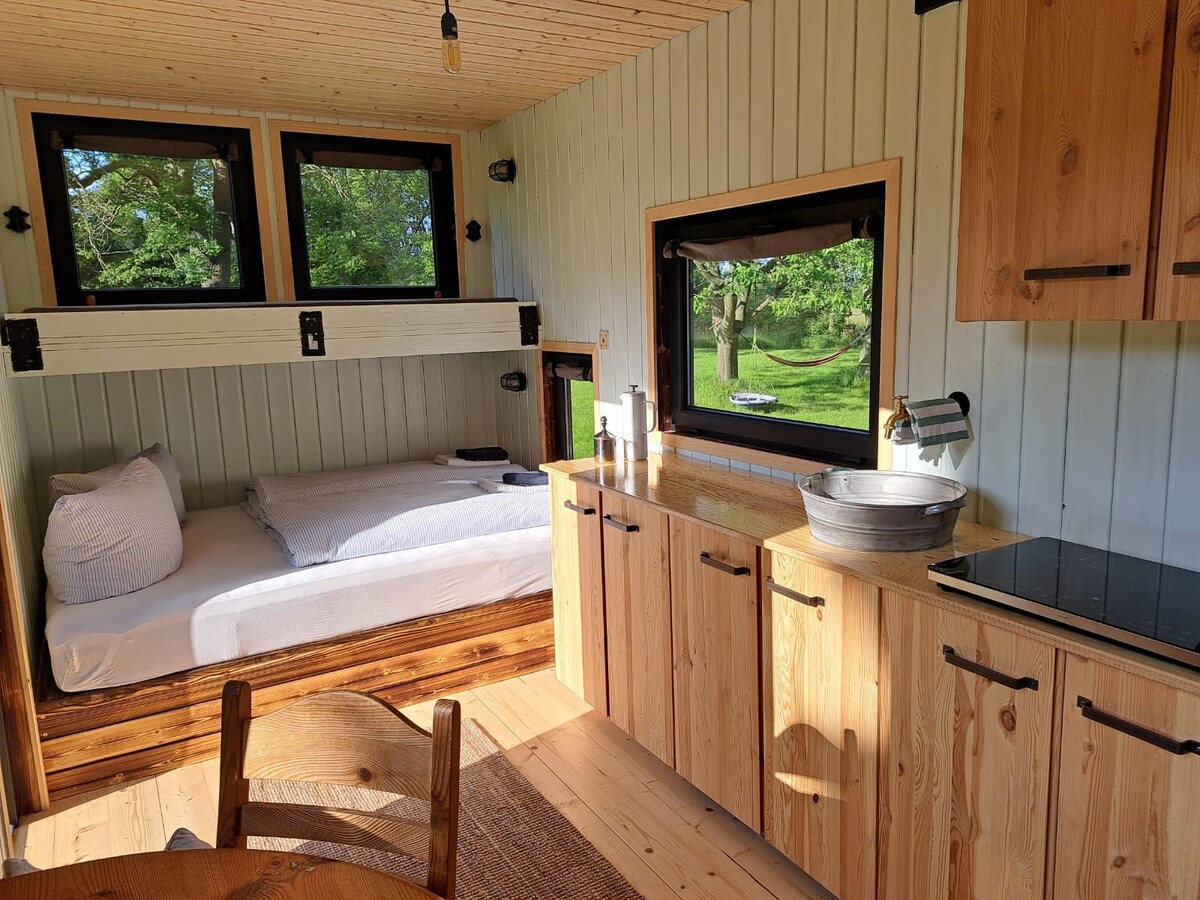 Pobjegnite od svega i uživajte u odmoru u prirodi u kući na brestovima. Naša udobna kuća od 35 m², okružena prostranom baštom, idealno je utočište za ljubitelje prirode. Opustite se u udobnoj spavaćoj sobi ili na podu za spavanje. Otvorena kuhinja i dnevni boravak sa kaučem na izvlačenje pružaju prostor da se osjećate udobno. Kamin osigurava tople, prijatne večeri – savršene za opuštanje u srcu Elm Lappwalda.