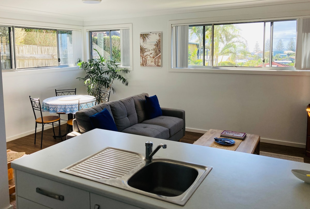 The Beach House Studio ... tucked away on the most exclusive parcel of land on Pilot Hill. Veliki pogled na okean je samo početak vaše priče. Probudite se uz suštinski stil života na plaži u Australiji, gledajte kako se klubovi odvijaju u vodi ispod, kitovi koji se probijaju iz udobnosti vaših egipatskih posteljina. The Beach House Studio is your dream holiday abode.