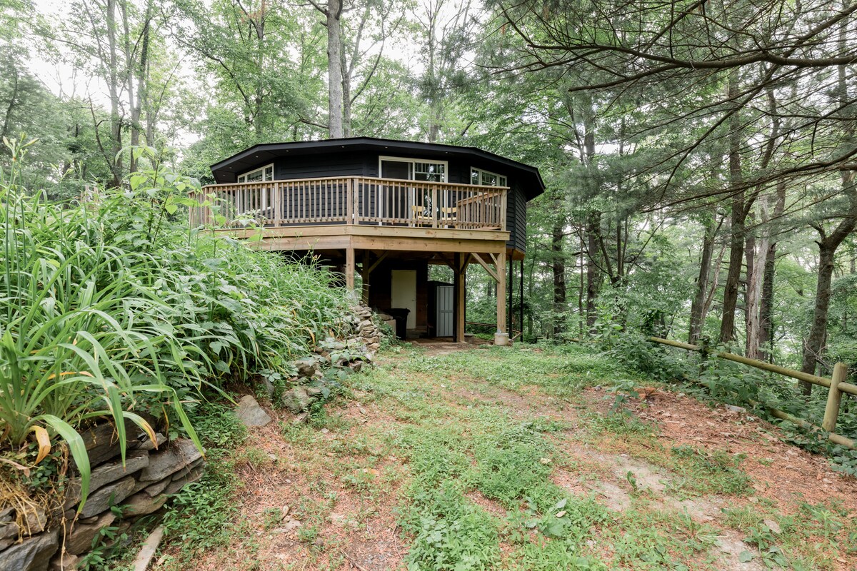 Ovaj jedinstveni i mirni 13-strani okrugli dom nudi luksuzan život okružen prirodom. Od bara za doručak od oraha do ogromne vazdušne hidromasažne kade, kao i od bujnog pogleda na šumu i planine, svaki komad ove pite odiše stilom, udobnošću i spokojem. Najbolje su uživali u onima koji traže luksuzan privatni smještaj; nešto zaista jedinstveno i posebno. Nalazi se 2,5 milje od istočnog ruba centra grada i 3,5 milje od ulaza u Blue Ridge Parkway i najbliže planinarske staze.
