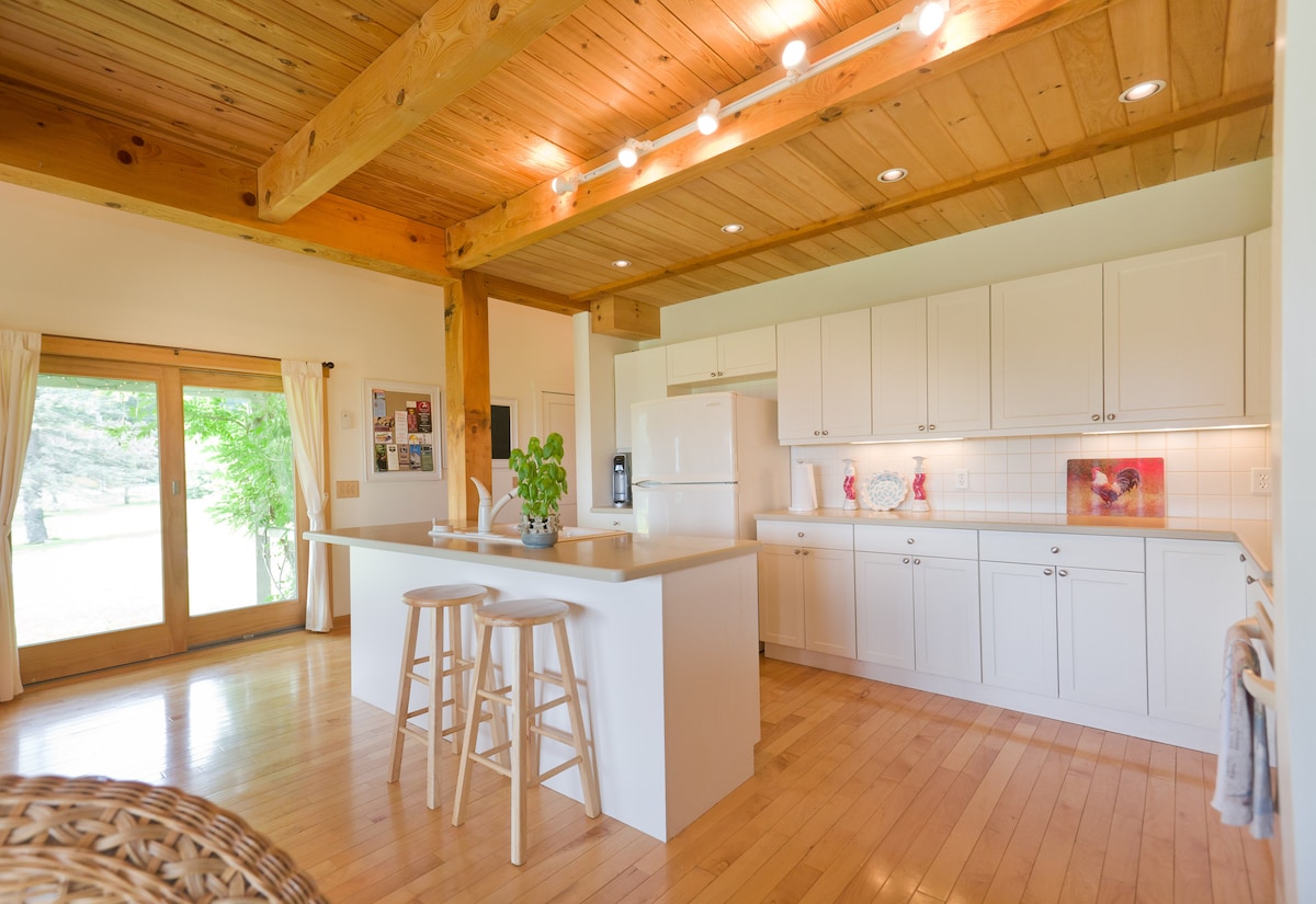 Zemlja koja živi u svom najboljem izdanju. Renovirani prostor za goste na radnoj farmi alpaka. Ovo je dvospratna jedinica sa čajnom kuhinjom, dnevnim boravkom i kupatilom na prvom spratu i studio potkrovljem na drugom spratu. Dve terase, po po jedna na svakom spratu, gledaju na farmu. Nedavno renovirana. Odlično svetlo preplavljuje jedinicu. Centralna toplota i klima-uređaj. Uživajte u farmi i bukoličnom okruženju u Vudstoku. Posmatrajte alpaku sa prozora ili terase. Čekaju vas kafići za jutarnji doručak i ukusnu večeru.