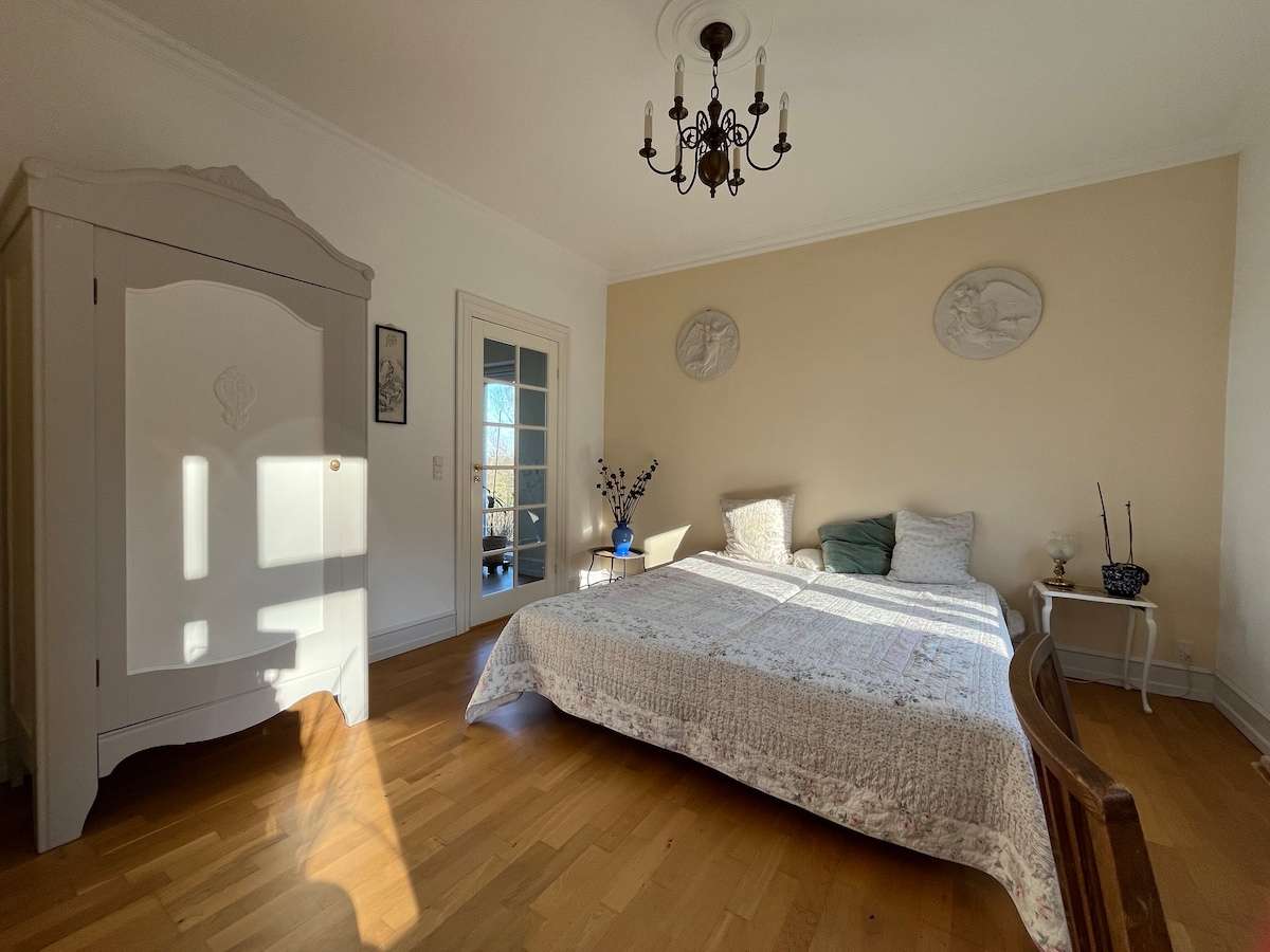 Živite u svom stanu na prvom spratu naše velike seoske kuće. Sopstveno kupatilo i kuhinja. Naše imanje se nalazi na parceli od 5 hektara sa ovcama na livadi, kokoškama u dvorištu, voćkama i povrtnjakom, puno prirode ispred vrata i mnogo mogućnosti za pešačenje i vožnju biciklom u šumi i okolini. 19 minuta do Odense C, 10 minuta do Odense Å i 30 minuta do skoro svih krajeva Fina. Savršena baza za divan odmor na Funu - bilo da vas mami šuma, grad, plaža ili nešto treće. PS: Super Wi-Fi!