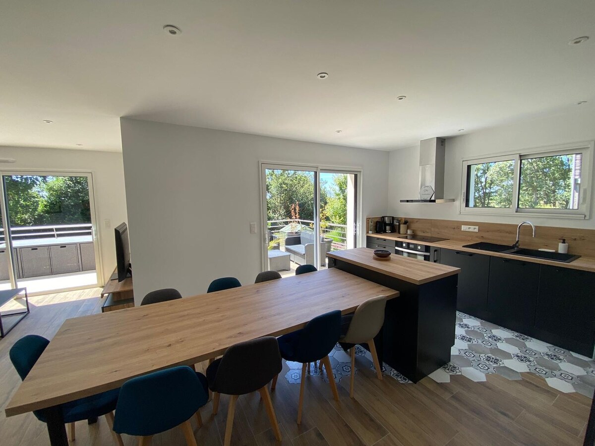 Dobro došli u Les Petits Gabelous, novu dvospratnu kuću u Pont d'Armesu, u tipičnom selu koje se graniči sa slanim močvarama sliva Mčs. Smirenost, priroda i zajednički trenuci za prijateljski boravak s porodicom ili prijateljima. Plaže Pen Be i Pont Mahe udaljene su 5 km. Regionalni park prirode Brier je u blizini, idealan za šetnje. Gerand 17 min, La Bol i La Roš-Bernar 22 min, Van 45 min i Nant 1h12. Ljubimci nisu dozvoljeni. Jul/avgust: nedeljne rezervacije.