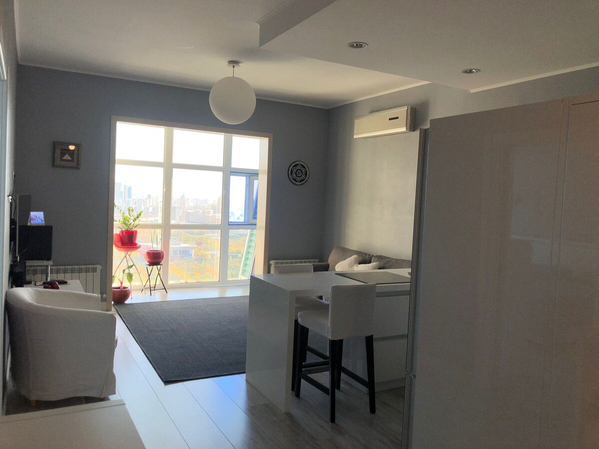 Dobro došli u Nexpo City A-Apartments! Sve je udaljeno samo nekoliko koraka: EXPO, mega Silk Way, Hilton, National Bank, Nazarbayev University, IT University, Invictus Fitness, AIFC, Central Mosque i još mnogo toga. Unutra ćete pronaći: - 4 mjesta za spavanje (bračni krevet i kauč), - sve neophodne uređaje, posuđe, peškire i posteljinu, - i brz Wi-Fi. Sve za vašu udobnost. Oh, i bez pušenja — hajde da održavamo svjež vazduh!