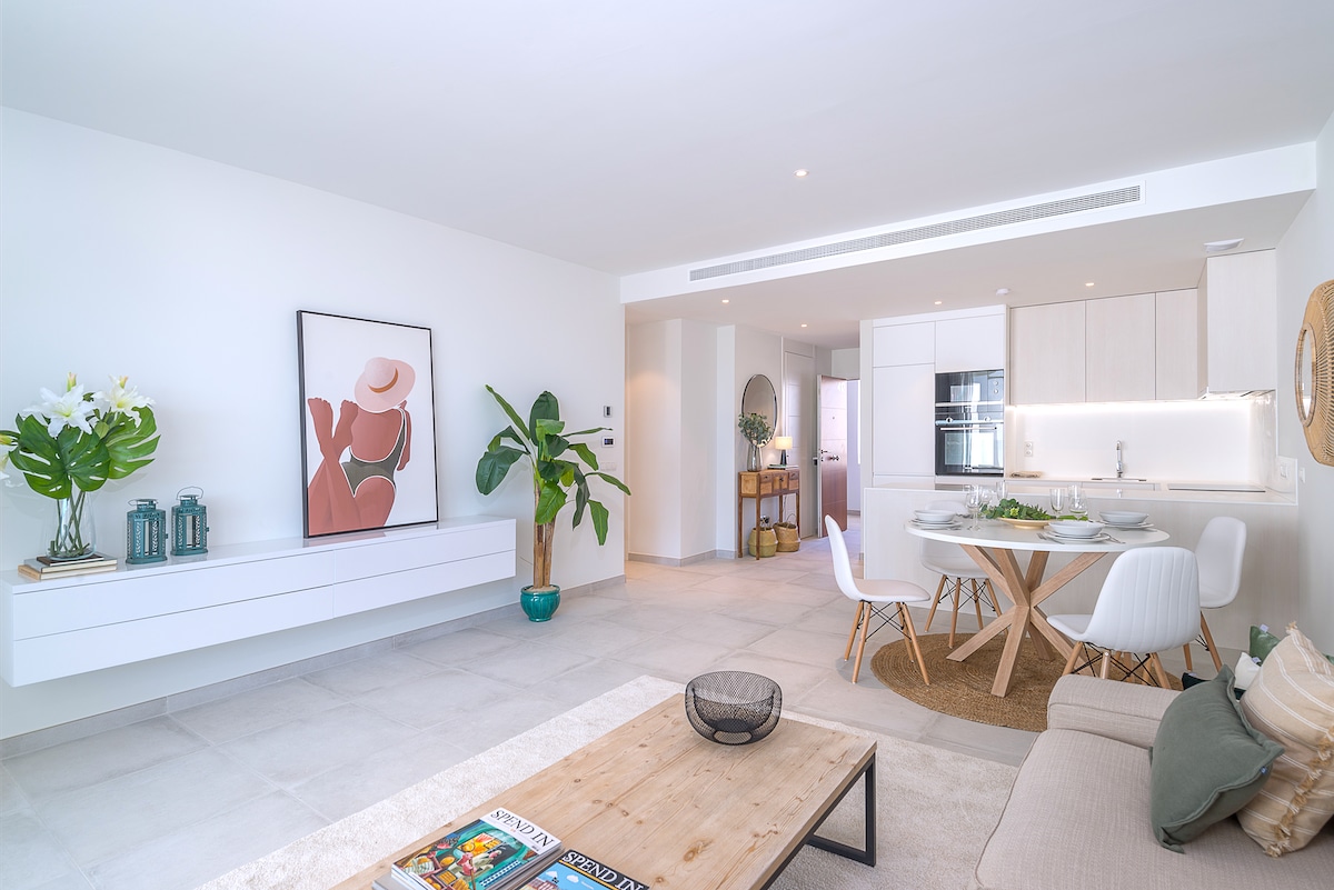 Uživajte u udobnosti ovog potpuno novog luksuznog 2BR stana sa prelepim sadržajima u odmaralištu Kortijo del Golf. Uživajte u elegantnom okruženju na idealnoj lokaciji za istraživanje ovog područja i uživanje u golfu, plažama, tenisu, spa centru, kupovini i još mnogo toga! ✔ Novi (2021) 122 m2 stan ✔ Veliki udobni kreveti ✔ Potpuno opremljena kuhinja Privatna terasa površine✔ 38 m2 ✔ Brzi Wi-Fi ✔ 4K pametni televizor ✔ Zvučni sistem bez zida ✔ Predivan bazen za odrasle + za decu (sezonski) Parking ✔ u✔ garaži sa ogradom za zajednicu Saznajte više u nastavku!