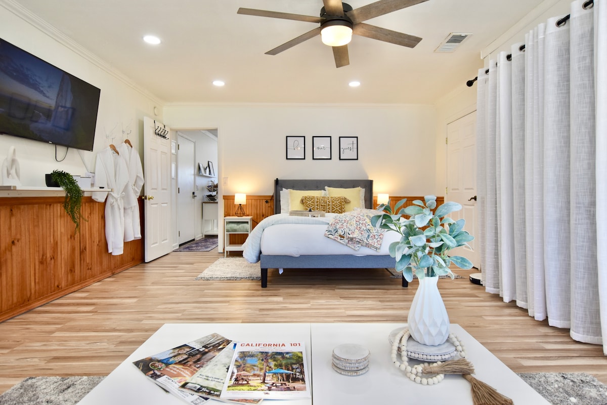 Opustite se u našem modernom seoskom odmaralištu iz sredine prošlog vijeka! Nalazimo se samo nekoliko minuta od Hvi 101 i centra grada, ali se osjećamo kao kilometrima daleko od civilizacije. Nalazimo se u srcu Centralne obale, samo 1 milju do vinograda Dr gdje poznavaoci vina nalaze najbolje butik vinarije. Više volite mikro pivare? Atascadero ima najbolje. Želite li da surfujete? Samo 25 minuta do zaliva Moro. Imate djecu? Udaljeni smo nekoliko minuta od zoološkog vrta, vodenih parkova i jezera! 10 minuta do centra Paso Roblesa za fine restorane. 20 minuta do Cal Poly!