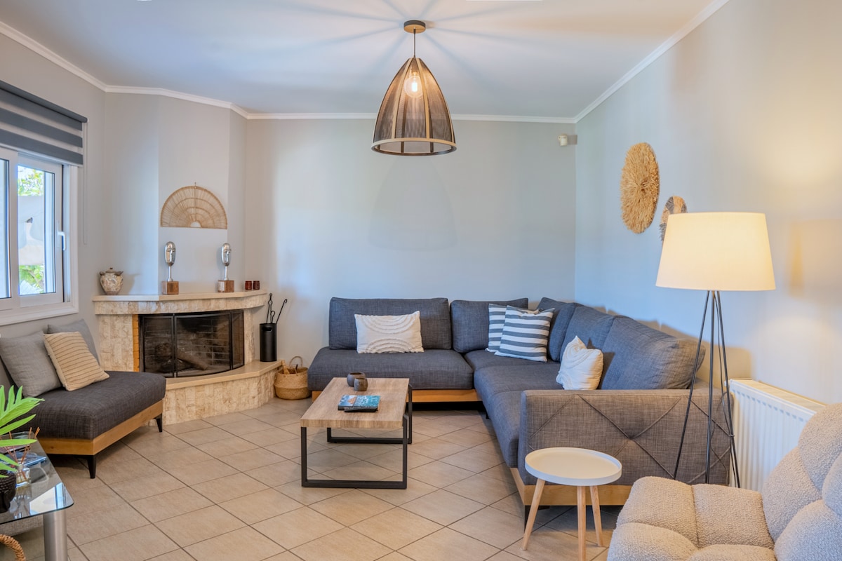 Naša vila, dio CretanRetreat-a, nudi prelijep pogled na mirnu lokaciju, idealnu za porodice, parove i istraživače. 98 m², 25 minuta od Herakliona, 15 minuta od Knososa, 30 minuta od aerodroma. ¥ 3 spavaće sobe 2 kupatila 2 bračna kreveta (1,6x2) ¥ 4 balkona ¥ Garden ¥ Parking u sklopu objekta ✭„Jedan od najboljih smještaja na Airbnb-u u kojima smo boravili! Odlična lokacija sa divnim pogledom i veoma mirna, okružena maslinjacima. Vila je puna karaktera i idealna lokacija za posjet Knososu i Heraklionu”