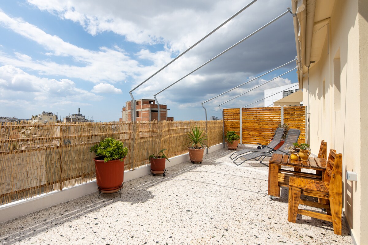Uživajte u elegantnom iskustvu u jednom od najživljih kvartova u Atini. Naš potpuno renovirani stan sa jednom (1) spavaćom sobom nalazi se na 4. spratu stambenog objekta koji nudi domaću atmosferu, pogled na Akropolj sa terase i jednostavan pristup najpoznatijim gradskim atrakcijama. Sunčani stan ima sve potrebne sadržaje za duže boravke, a poseban dušek je vrhunac udobnog sna.