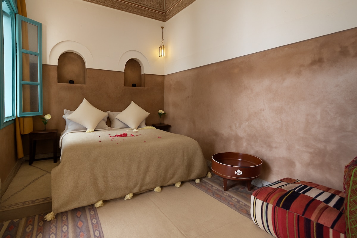 Boravite u šarmantnom rijadu u srcu Medine u Marakešu! Naš rijad ima 5 autentičnih soba, svaka sa privatnim kupatilom. Ovaj smještaj je samo za jednu sobu, a svoju omiljenu možete da izaberete po dolasku. Uživajte u jedinstvenom spoju marokanske tradicije i moderne udobnosti, savršenom za parove, samostalne putnike ili prijatelje. Na samo nekoliko koraka od pijaca, spomenika i lokalnih restorana, idealna je baza za nezaboravno iskustvo u Marakešu.