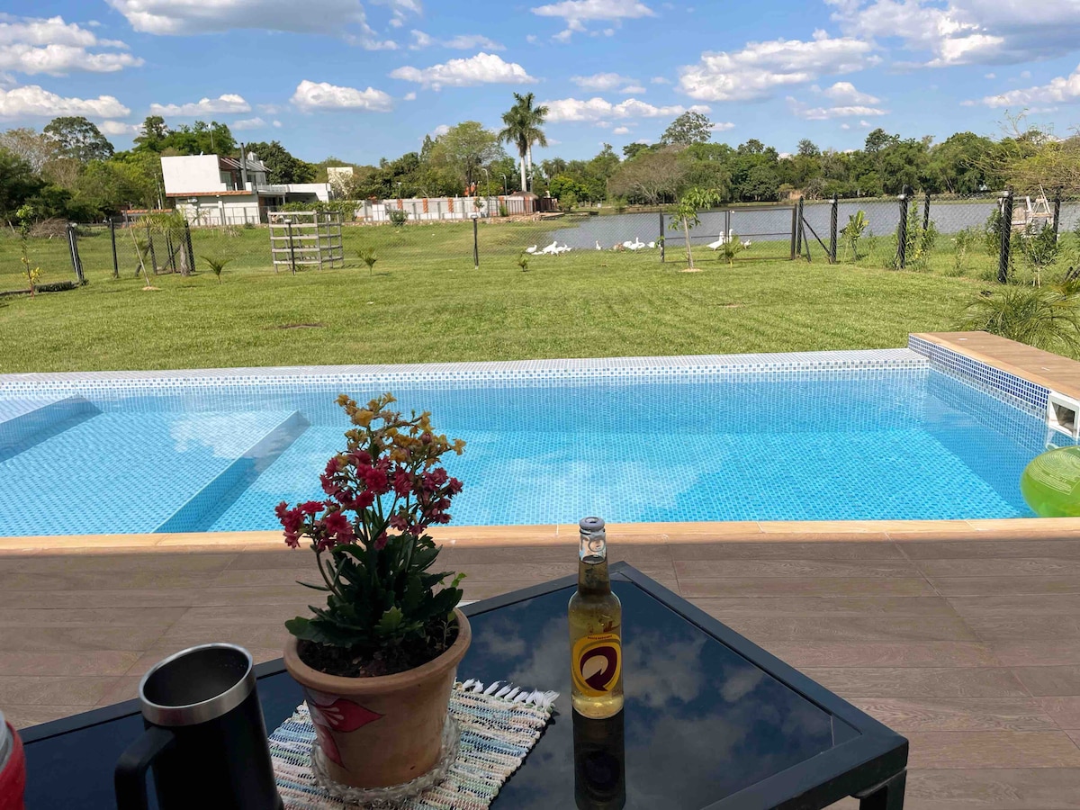 Nalazimo se u ekološkoj četvrti Ytu, na samo sat vremena i nekoliko minuta od Asunsijona, na 15 minuta od San Bera i na 6 minuta od bazilike Caacupé. Objekat ima pristup potoku Arroyo Ytu i vidikovcu „Jesús Misericioso” Kuća može da primi do 10 ljudi, iznajmljuje se u potpunosti i isključivo za jednu grupu gostiju. Lako dostupno, samo 1,5 km od trase, kaldrmisana ulica. AKO VAM SE SVIĐA OVAJ SMEŠTAJ ZA BUDUĆE PUTOVANJE, NE ZABORAVITE DA GA SAČUVATE U OMILJENIM :)
