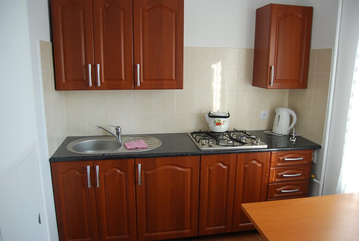 Biće nam drago da vas upoznamo u udobnim apartmanima vrhunskog stambenog kompleksa Abyroy Residence u centru grada! Jednosoban stan ima sve što vam treba za duži ili kraći boravak: sve kućne aparate, uvijek čistu posteljinu i peškire. Naš cilj je da vaš boravak kod nas bude što mirniji i udobniji. Zato je naš stan u potpunosti opremljen svim kućnim potrepštinama i spreman je za vaš dolazak u zakazano vrijeme.