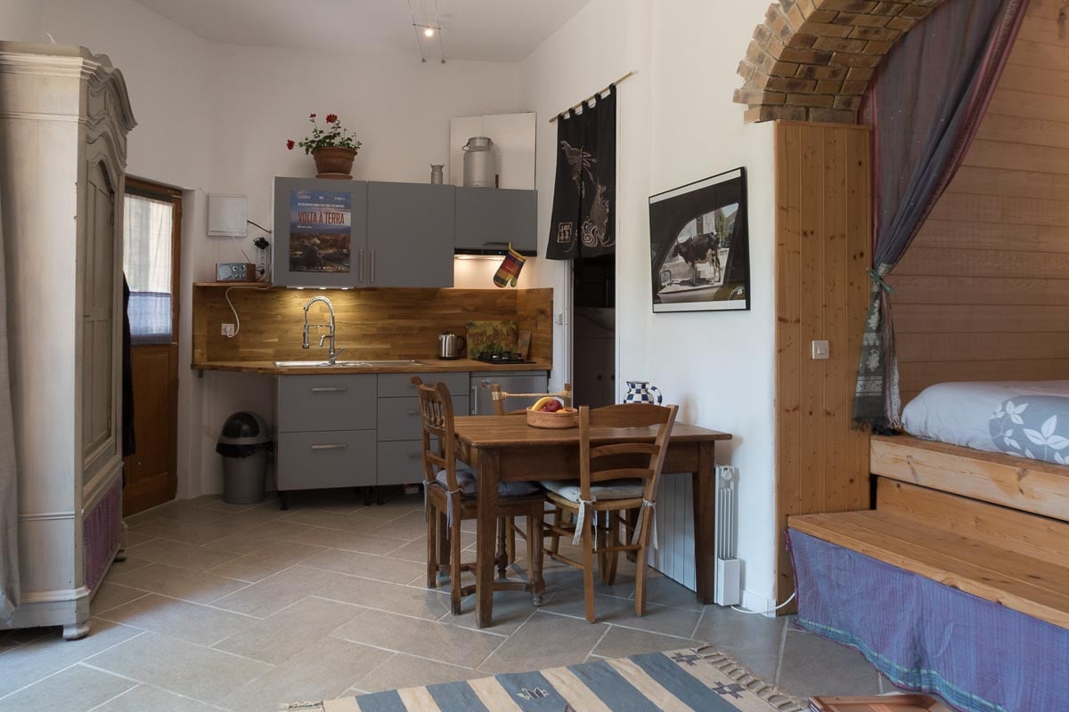 Opustite se i napunite baterije u ovom lijepom i tihom smještaju, smještenom na lokaciji od 34.000 m2 na granici šume u podnožju brda Syncinal de Saou. Sa bazena se pruža predivan pogled na dolinu Drome. Uživajte u okruženju za planinarenje, plivanje, čitanje ili odmor. Studio od 30 m2 ima bračni krevet u dnevnoj sobi i jedan dodatni krevet na međuspratu do kojeg se dolazi merdevinama. Iz kuće možete direktno da pristupite više prelepih planinarskih staza.