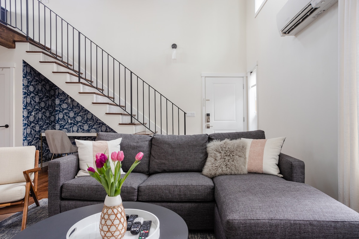 Dobro došli u Francusku biblioteku, potpuno inkluzivnu, samostalnu, luksuznu seosku kuću King Suite, sestrinsku jedinicu u francuskoj seoskoj kućici. Пробудите се у сенци француских врата старих преко 150 година, пренамењених у узглавље кревета из Виле Меније у Кану, у Француској, и античких књига из имања Џејмса А. Мура, грађевинара и инвеститора у позориште Мур у Сијетлу... поткровље отвореног концепта је елегантно рестаурирано и преуређено како би опремило све модерне погодности... питајте о нашим опцијама за дугорочни боравак!