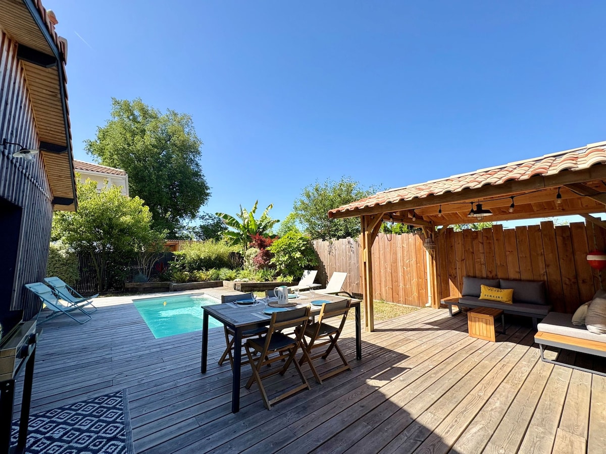 Zdravo, moje ime je Sandrin i predlažem vam da iznajmite moju šarmantnu kuću sa drvenim okvirom koja je u potpunosti renovirana na oko 50 m2. Nalazi se u seoskom klubu Khélus u Gujan-Mestri. Postavka je tiha i tiha, na ivici šume i nudi slobodno vreme za šetnje ili bicikle. Mnoge prodavnice su u blizini, bazen je dostupan pješke, biciklom ili automobilom, a okean je udaljen 15 minuta automobilom.
