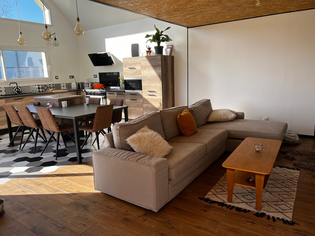 Situé à 70 m de la plage , et du centre ville Classé 3★ - Résidence de tourisme cette maison lumineuse et cosy allie confort moderne et esprit Bord de mer. Profitez d'un séjour convivial avec une belle pièce de vie baignée de lumière grâce à sa grande baie vitrée et son puit de lumière . L'espace comprend un salon confortable, une salle a manger chaleureuse et une cuisine équipée. A l'étage , une mezzanine accueillante abrite un lit double et dans le salon un canapé convertible pour deux pers