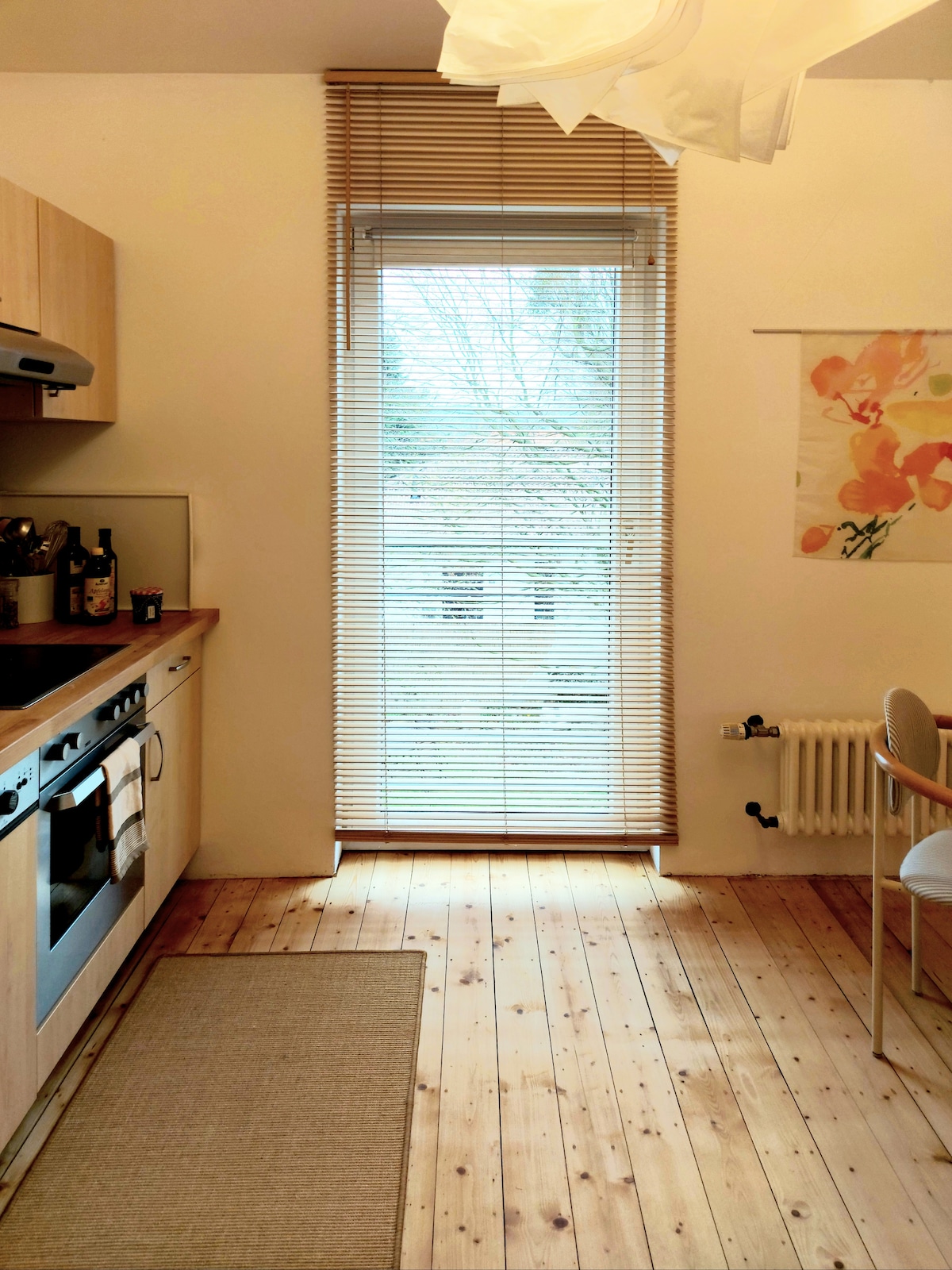 Svježe renoviran, moderan stan u srcu Štajnhudea - mirno se nalazi na selu i samo 5 minuta hoda od Štajnhuder Mira. Savršeno za isključivanje ili rad zahvaljujući brzoj Wi-Fi mreži. Stan nudi potpuno opremljenu kuhinju, terasu sa dnevnim boravkom i roštiljem. Na zahtjev, tu su dnevne svježe rolnice za doručak. Rekreacija, priroda i udobnost u jednom!