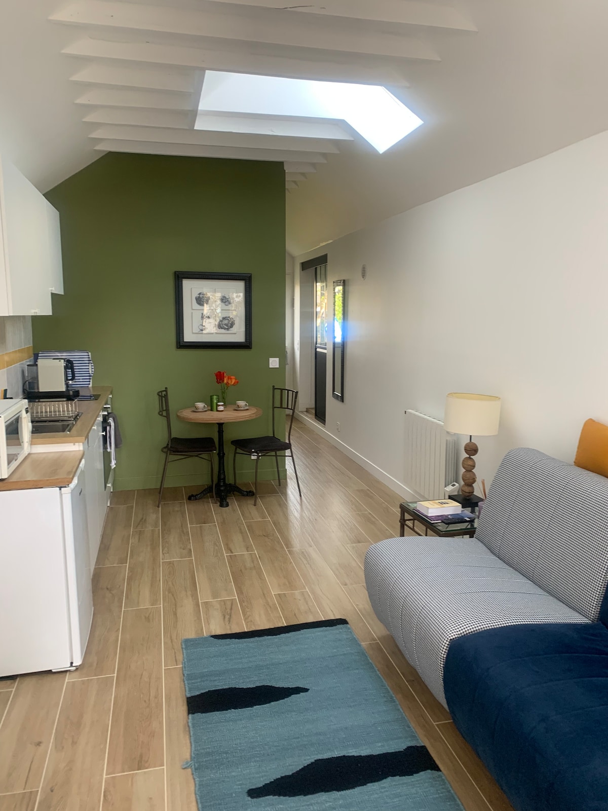 Grand studio avec vue à 180° sur la rivière d’Auray et le port de Saint Goustan. Avec son lit double, il est parfait pour accueillir 2 personnes avec tout le confort nécessaire. Vous serez idéalement situé pour découvrir Auray, ses boutiques d’artistes, ses marchés et ses restaurants à pied. Le ménage et le linge de maison (draps, serviettes, tapis de bain, torchons) sont FOURNIS ET INCLUS dans la réservation.