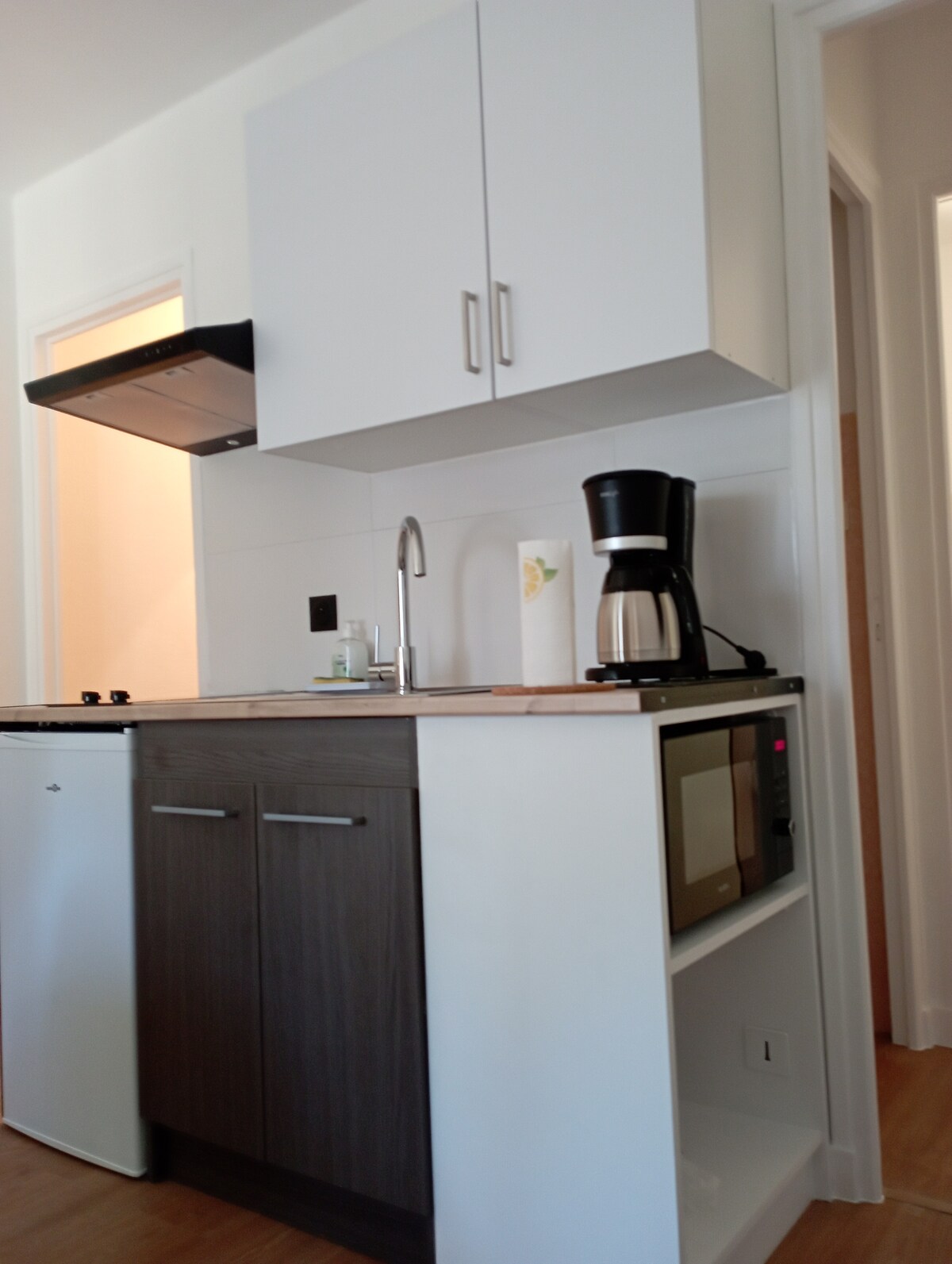 Za iznajmljivanje veličanstvene studio apartmana brvnara 23 m2 potpuno renovirana 2022. godine + velika terasa na 1. spratu s pogledom na more, veliku plažu Carnac. Izuzetan pogled na veliku plažu i zaliv Quiberon. Privatni parking u objektu. Biciklistička soba, zaključana. Stan koji se sastoji od: - 1 ulaza u brvnaru, sa 2 kreveta na sprat - 1 renovirano kupatilo, - 1 WC - 1 dnevna soba/dnevna soba - 1 opremljena kuhinja Restorani, pekara u 5 minuta Super U na 500m