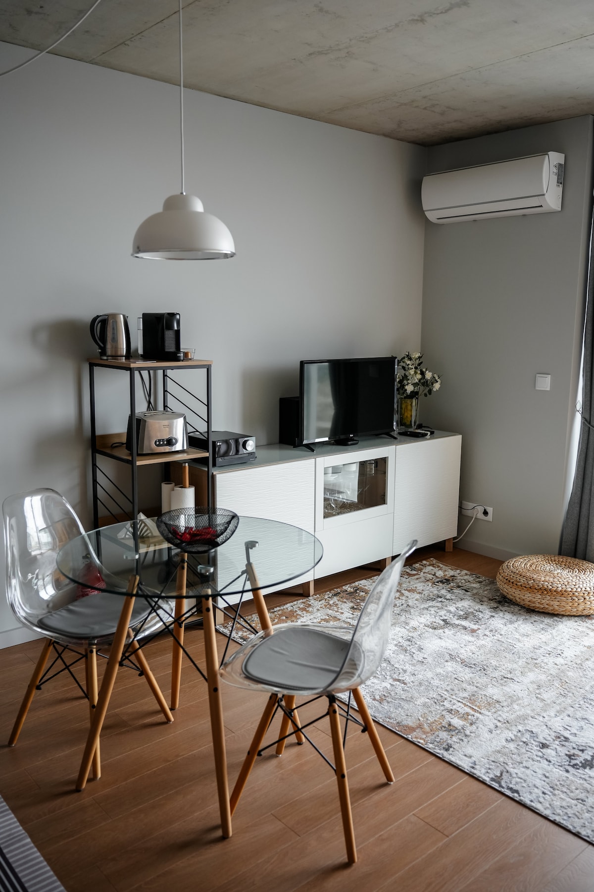 Moderan i udoban jednosoban stan u srcu Aveira – Beira-Mar. Odlična lokacija, u blizini kanala i glavnog restorana — savršena za istraživanje grada pješke. Moderan, funkcionalan prostor dizajniran imajući na umu dobrobit. Spavaća soba s udobnim bračnim krevetom (180 cm) i potpuno opremljenom kuhinjom s mašinom za pranje sudova i priborom za jelo. Udobna dnevna soba s Wi-Fi mrežom, klima-uređajem i Smart TV-om. Kupatilo sa sadržajima za rituale.