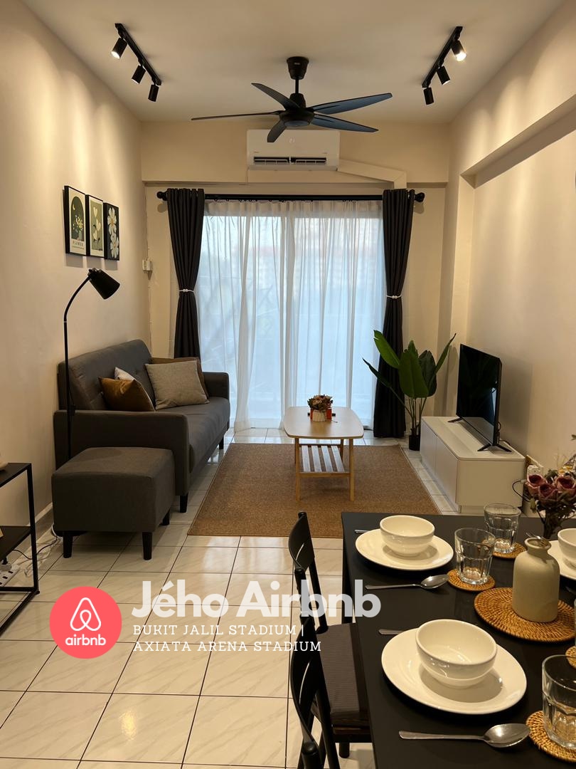 Uživajte u novom i udobnom unutrašnjem uređenom prostoru odmarališta sa zadivljujućim pogledom na golf i pogledom na KL grad u daljini. Jedinica se sastoji od prostranog dnevnog boravka i trpezarije, moderne kuhinje i savršenog balkona. Prostor sadrži 3 spavaće sobe i 2 kupatila, od kojih prostrana glavna spavaća soba ima bračni krevet i kupatilo povezano sa sobom. Strateški smešteno u srcu Bukit Jalila, ovo mesto ima lak pristup stanicama LRT-a, stadionima, parkovima i glavnim autoputovima.