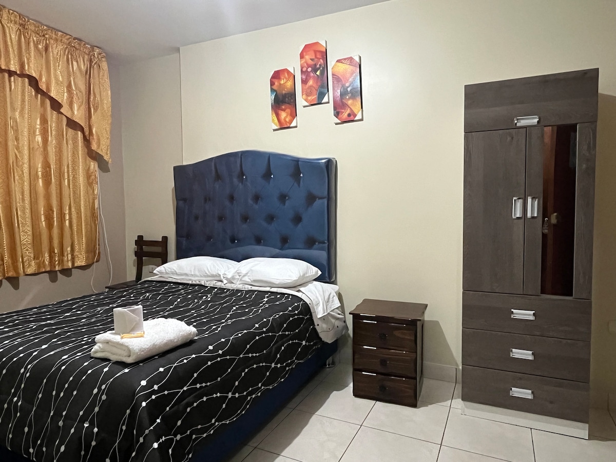 Te ofrecemos un hospedaje moderno y cómodo, con habitaciones equipadas con camas nuevas y televisores HD 4K. Contamos con baños privados y compartidos, y una amplia sala de estar para tu descanso. Las instalaciones incluyen amplios servicios higiénicos, todo en un ambiente agradable y accesible. Estamos ubicados en una avenida principal, lo que facilita tu acceso a diversas zonas de la ciudad. Ideal para quienes buscan confort y conveniencia en su estancia.