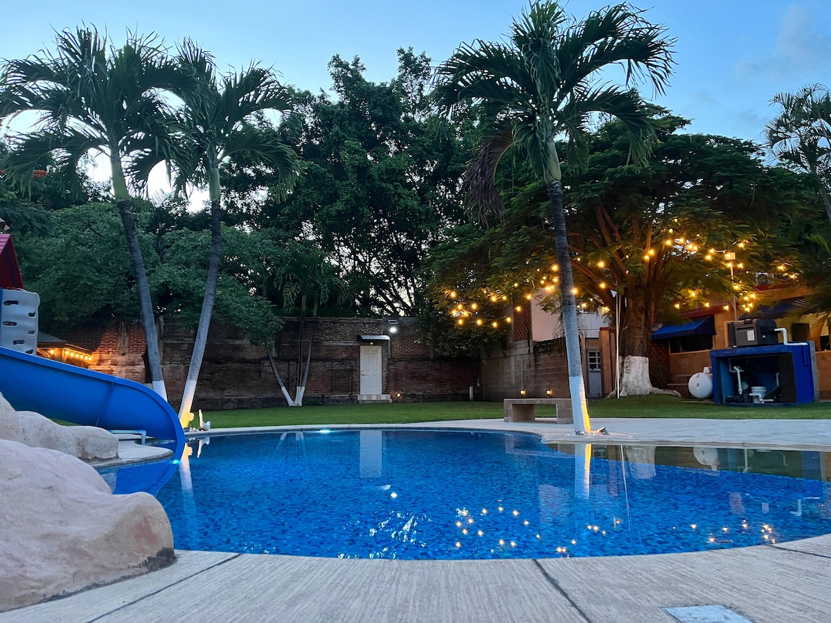 🌿 Esápate in Cuautla, Mor, 90 min from CDMX and Puebla. Idealno za porodice i parove: veliko dvorište, bazen sa solarnim panelima, ognjište, terasa sa ležaljkom, roštilj, brz WiFi, privatni parking, igre za odrasle i decu. Odsedaćete u malom apartmanu od 50 m2, opremljenom za 4 odrasle osobe + 1 trogodišnje dete (spava u krevecu) Blizu Jekapixtle, Six Flags, Skydive i Oaxtepec. Rezervišite kod nas i želimo vam dobrodošlicu uz vrhunske komplete dobrodošlice koji će vam ugađati.