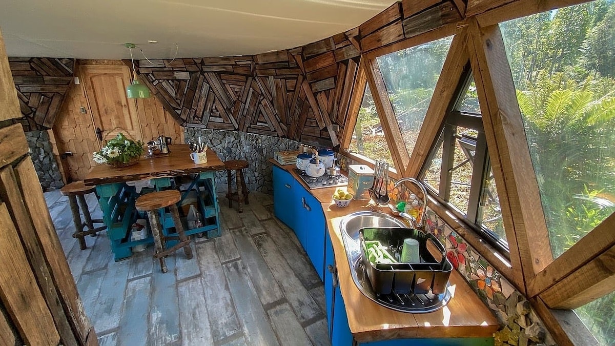Observation dome, offers comfort facilities, in the middle of nature, but form accessible on one side of the south road just 15 minutes from Coyhaique on the way to the airport and south of the region. Opremljen je kuhinjom, šporetom na pelet, satelitskom televizijom i sobom na drugom spratu. Pogled na vodopad u Saltu je nevjerovatan Nema ništa bolje od spavanja uz zvuk vode za boravak koji obećava opuštanje i spokoj. Sada imate Wi-Fi 👍🏻 Organizujemo i obilaske širom regiona.