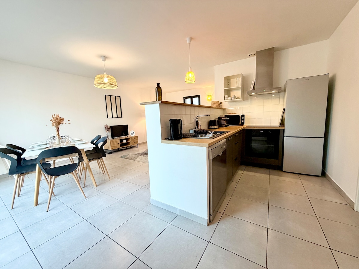 Potpuno renoviran klimatizovan stan 2024. godine ✅ Besplatno privatno parking mjesto Ukusno namješten smještaj s 3 zvjezdice za 2 osobe. Nalazi se na prvom i najvišem spratu male, tihe zgrade. krevet će biti namješten i peškiri će biti obezbijeđeni 17 minuta hoda do centra grada i železničke stanice La Rošel. Prva plaža udaljena 3,3 km velika tuš kabina tihi klima-uređaj Vlakna TV Bultex posteljina kompletna kuhinja Nespesso Itd. Šarmantan dom za otkrivanje.