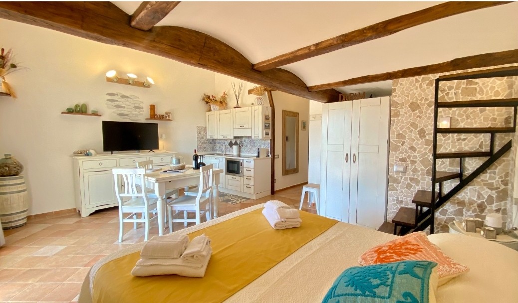 karakterističan sardinijski staco završen finim materijalima, opremljen svim udobnostima. Uživa u prekrasnom pogledu na jezero glatkoće, dovoljno zelenih površina za provođenje dana u znaku opuštanja..idealno za one koji se bave ribolovom, sportovima kao što je serf kanu.. nekoliko kilometara dalje je hiljadu godina staro maslinovo drvo S'OZASTRU DE SANTU BALTOLU. Možete da idete na izlete na masivu Limbara udaljenom 1360 metara. Na 10 km nalazimo Calangianus sa svojim poznatim i prestižnim muzejom plute i grobnicama divova.