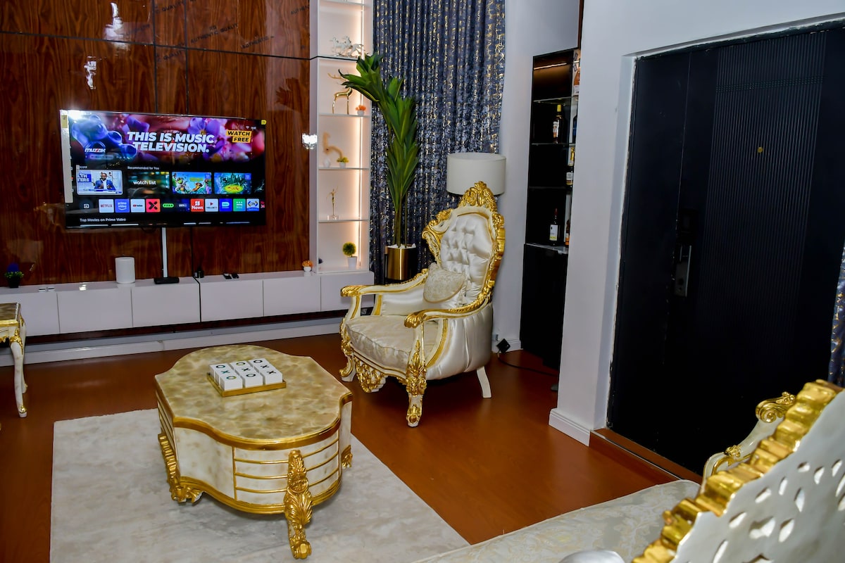 Cijene za duži boravak, svjetlovodni internet Wi-Fi, tri (3) klima-uređaja, topla voda, sistem solarnog invertera, osigurani, veliki kreveti, privatno dvorište, privatni parking, prostrana kuhinja, dječje igralište, pametni TV, neaby drveće/drvo za prikupljanje svježeg vazduha i još mnogo toga. Opustite se sa cijelom porodicom u ovom mirnom smještaju. Pogodan radni prostor/radni sto. Jedinice električne energije u vrijednosti od 10.000 NGN koje su obezbijeđene prilikom prijave, nakon čega će gost biti odgovoran za troškove električne energije.