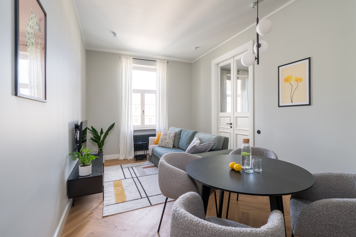 True Riga experience, 15 min walk through the park to Old Town & Riverside. Quiet, NEW beautiful and comfortable flat, newly renovated by a local architect and designer couple, in the heart of beautiful Art Nouveau area. Escape with a unique blend of classic vintage charm and contemporary accents, pops of colourful art throughout, and modern finishes. The 62 m2 apartment is located in peaceful and respectable neighborhood top Riga restaurants and bars.