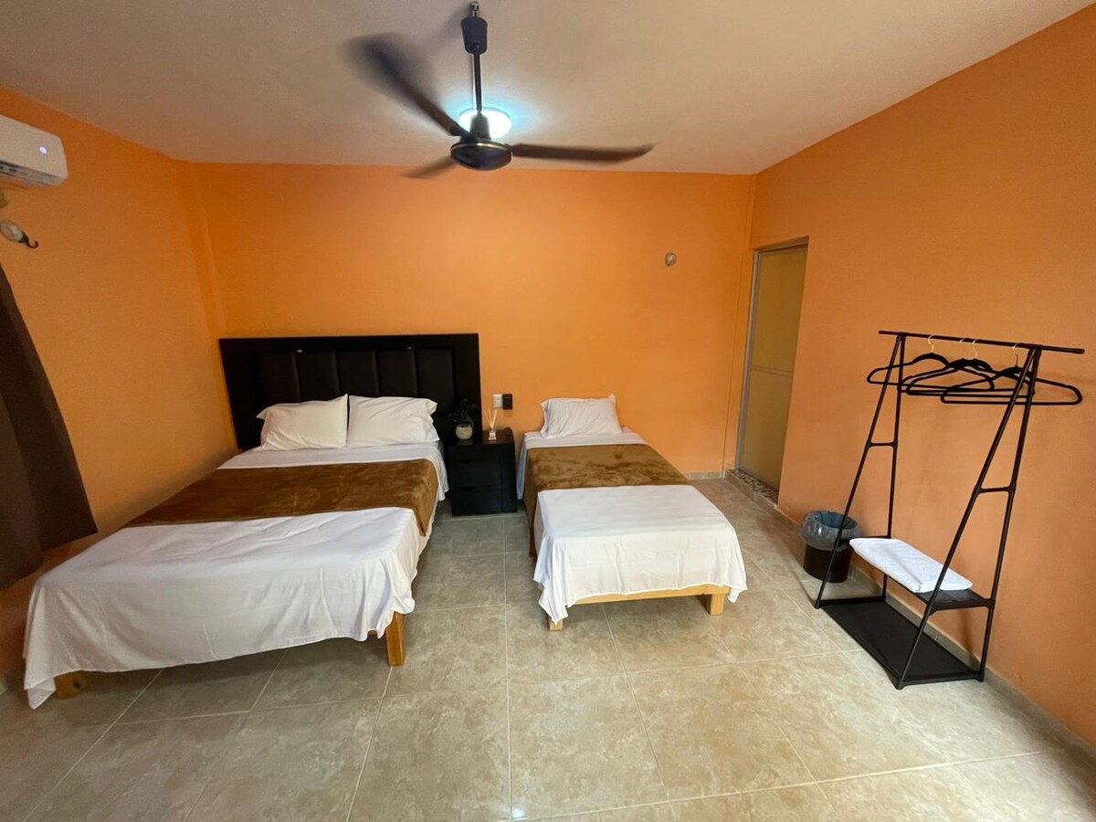 U ovoj sobi ćete naći rješenje za udoban i praktičan boravak u gradu Četumalu, jer je udaljena samo nekoliko koraka od centra grada i bulevara Bahija, kao i aerodroma. Ako planirate da posetite turistička mesta kao što su Bakalar ili Mahahual, to će biti savršeno, jer je veoma blizu ulaza i izlaza iz grada. Sve usluge kao što su restorani, prodavnice, apoteke, benzinske pumpe biće vam na samo nekoliko koraka.