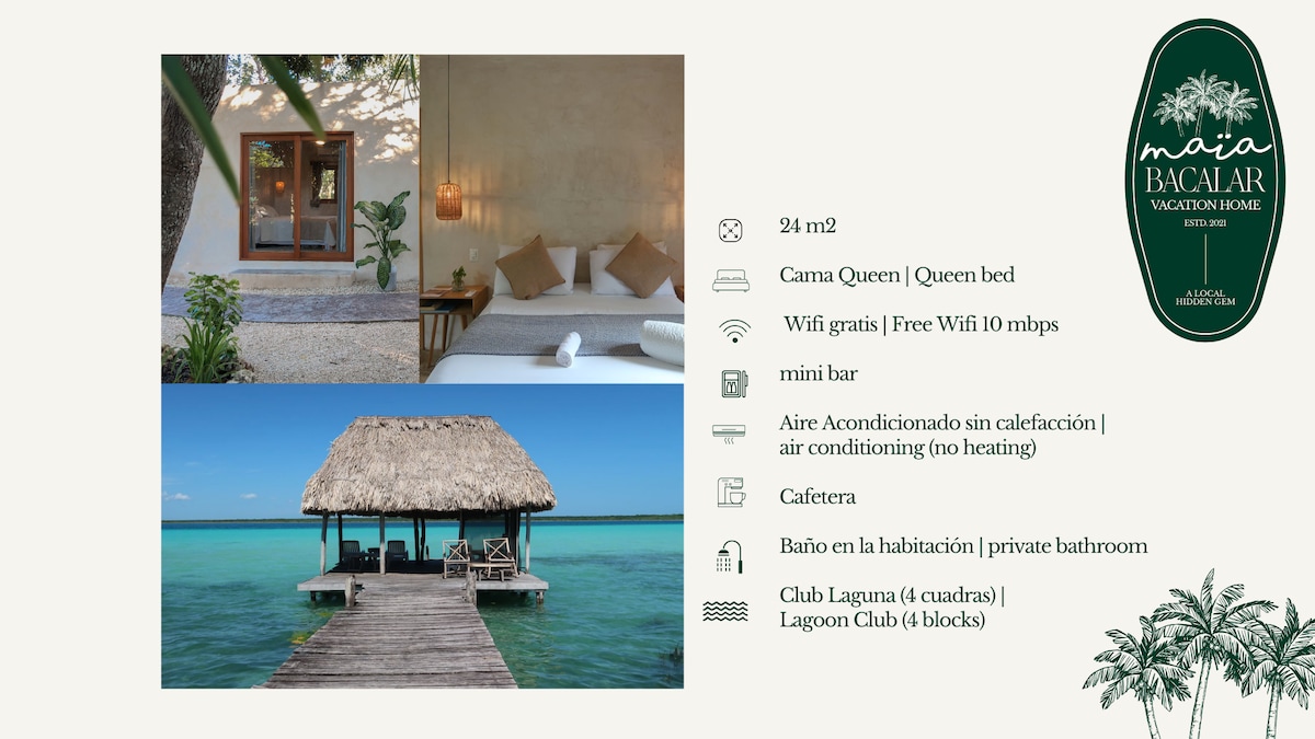 Casa Tita es un hogar frente a la laguna, pensado para sentirse cercano y acogedor desde el primer momento. La luz entra suave y el ambiente invita a descansar sin prisa. Es una casa ideal para compartir, reconectar y vivir Bacalar con calma, como si siempre hubieras estado aquí.
