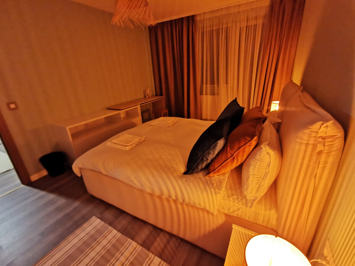 Opustite se u ovom mirnom, elegantnom jednosobnom stanu u ulici Colina Măgurii, Bacău. Uživajte u mirnom snu u udobnoj, zvučno izolovanoj sobi sa izuzetno udobnim bračnim krevetom i ambijentalnom rasvjetom. Imajte na umu da ovaj stan nema TV, a prijem telefona može biti ograničen u zatvorenom prostoru, a veza je dostupna prvenstveno na balkonu. Međutim, imaćete besplatan Wi-Fi, knjige, igre i prenosni retro radio/Bluetooth zvučnik koji se lako povezuje sa vašim telefonom.