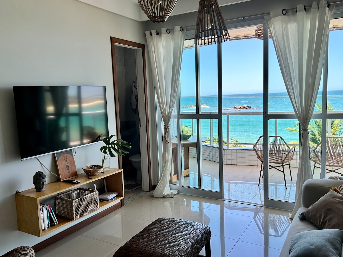 ★Pogled na more ★Stabilan i brz Wi-Fi od 480 megabita! ★Opremljena kuhinja ★Frižider ★1 spavaća soba ★1 pametni TV (dnevna soba) ★1 natkriveno parking mesto ★Jutarnje sunce ★Viseća ležaljka ★Obezbeđujemo predmete za plažu ★Posteljina i peškiri za goste ★2 plafonska ventilatora (dnevna soba i spavaća soba) ♥ Kompletan doživljaj za traženje smještaja za porodicu, slobodno vrijeme ili kućnu kancelariju ♥ Super Bem Located, Simply Cross the Street and Place the Feet at Peracanga Beach.