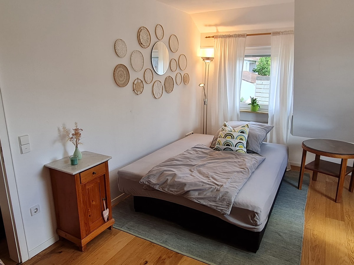Čeka vas prostran stan u prizemlju. Vrlo mirna lokacija u blizini S-Bahna (10 min. hoda). Odavde možete doći do centra Štutgarta, izložbenog terena i aerodroma. Stan se sastoji od svetlog dnevnog boravka i spavaće sobe sa bračnim krevetom, kauča i TV-a. Ima malu kuhinju u ulaznom prostoru i privatno kupatilo. Iz dnevne sobe dolazite na svoju malu terasu u bašti. Stan ima svoj ulaz i parking.