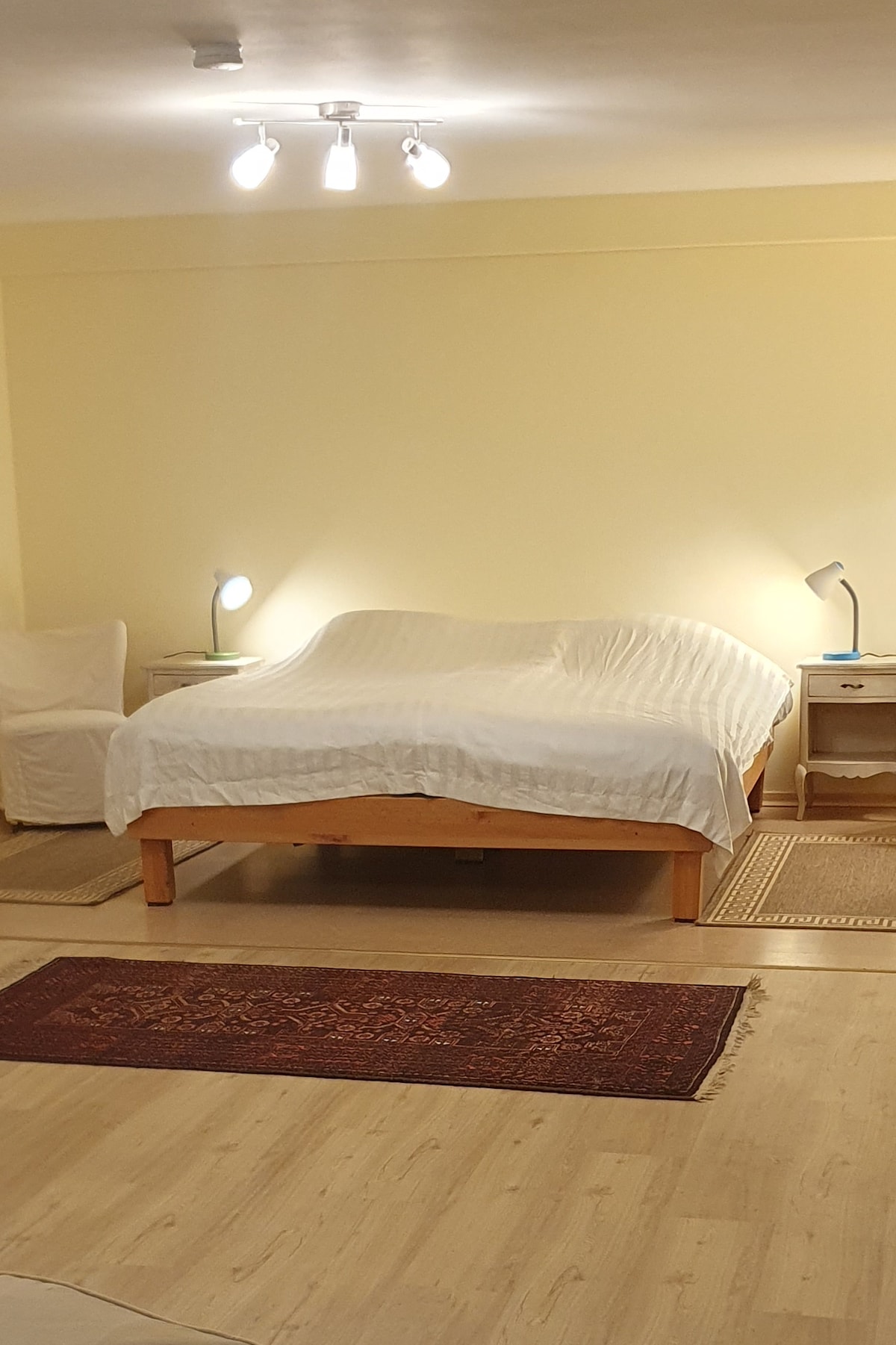 The 30 m2 mini-apartment is located on the top floor of our friendly shared house. It has a small private bathroom with shower and you can use the modern and larger shared bathroom one floor below if you like. In the apartment there is also a small kitchenette where you can prepare simple dishes. Otherwise, you can use the shared kitchen downstairs.