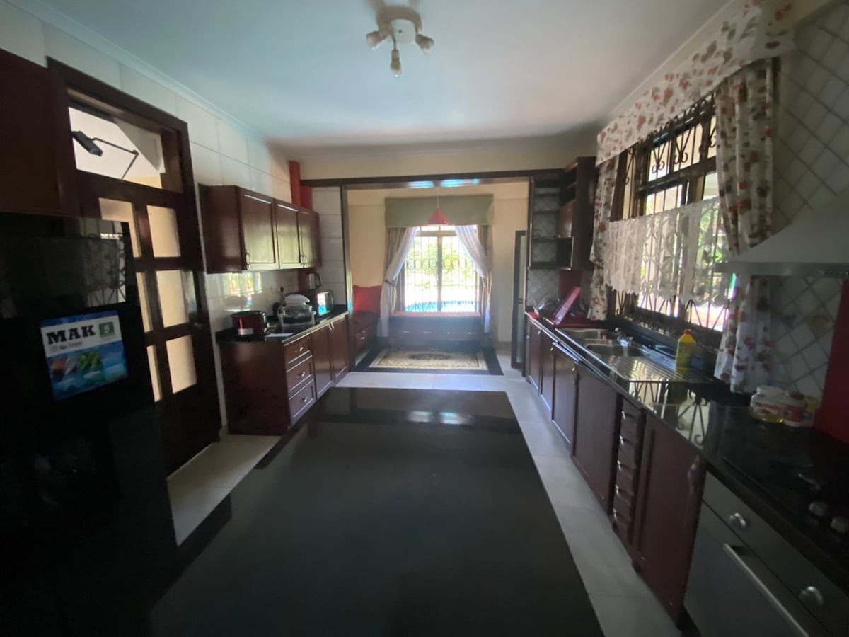 Luksuzni tropski smještaj na mirnoj zapadnoj obali Zanzibara. Naša prostrana vila, savršena za porodice, nudi pogled na zaliv Menai koji oduzima dah, četiri spavaće sobe, unutrašnje i spoljašnje kuhinje i zadivljujući bazen uz okean. Uživajte u modernim sadržajima kao što su klima-uređaj, pametni televizori, Wi-Fi i PlayStation. Opustite se u našem solarijumu ispred prelijepog pogleda na okean. Samo 15 minuta od Zanzibar Tauna i 20 minuta od aerodroma, uživajte u svom vrhunskom bijegu od gužve i vreve.