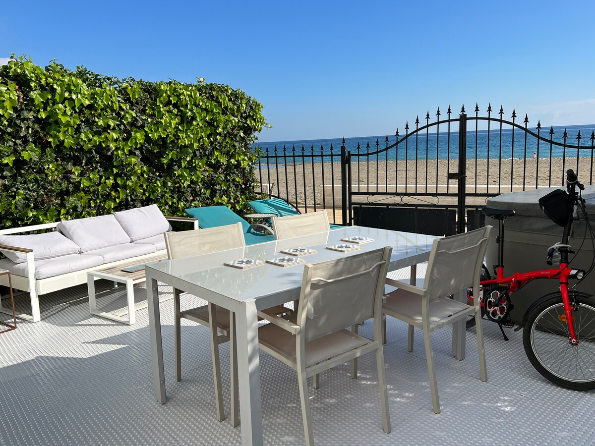 Nedavno renovirana kuća u gradu sa najboljom lokacijom direktno na plaži sa predivnim pogledom na Sredozemno more. Savršeno za prijatne šetnje plažom i kupanje u moru. Kuća ima privatni đakuzi na terasi sa pogledom na more, savršen za uživanje u letnjim večerima ili grejanje tokom hladnijih zimskih dana. U području postoji zajednički bazen udaljen oko 30 sekundi od ulaza. Kuća ima 85 kvadratnih metara i ima 2 spavaće sobe, 2 kupatila, dnevni boravak i kuhinju. Besplatan parking je dostupan u okolini. Dostupni su Wi-Fi i klima uređaj.