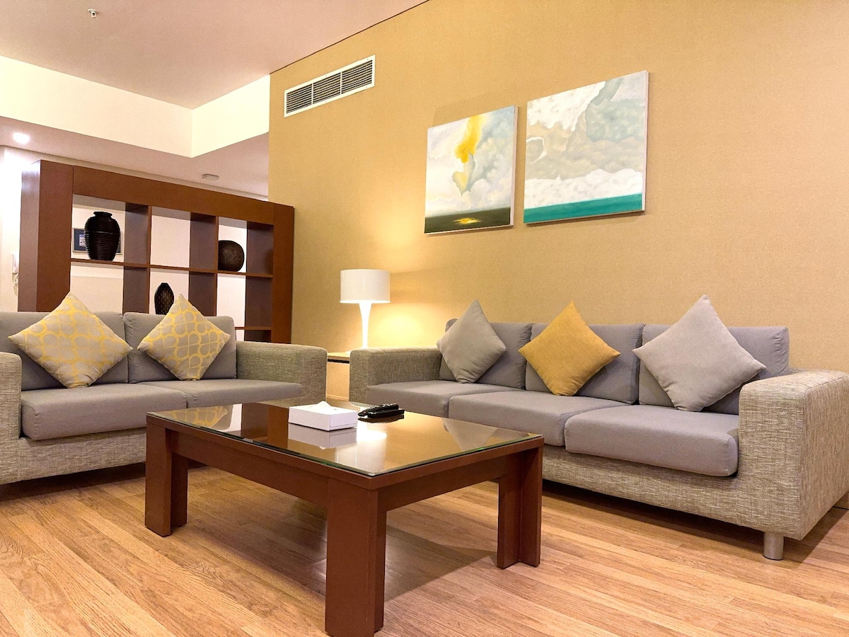 Doživite luksuz i praktičnost u našem elegantnom stanu uz plažu, koji se savršeno nalazi u srcu Marasija u Bahreinu. Uživajte u veličanstvenom pogledu na okean i direktnom pristupu netaknutom pijesku. Naš stan je povezan sa tržnim centrom Marasi Galleria, koji nudi mnoštvo restorana, prodavnica i zabavnih sadržaja na samom pragu. Idealno za miran odmor ili uzbudljivu urbanu avanturu!