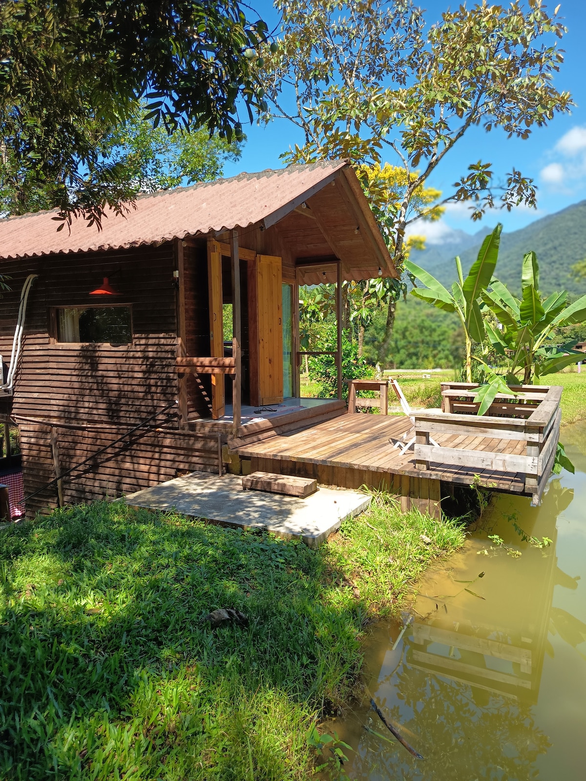 Privatna staza vodi do kanala, gdje je zalazak sunca samo za vas dvoje. Naši psi Auka i Džobs vole da vode goste tamo. 🐕 Brvnara usred autohtone šume, sa zaista svežim vazduhom. Viseća ležaljka, prostor za viseću ležaljku i logorska vatra za noći koje niko ne želi da se završe. Svježa jaja iz kokošinjca i začini iz bašte za zajedničko kuvanje. 🌿🔥 Praia do Ervino je na 3 km. Stolice, suncobran, frižider za hlađenje i bicikli su uključeni. Za parove koji žele da usporite tempo života. 💛