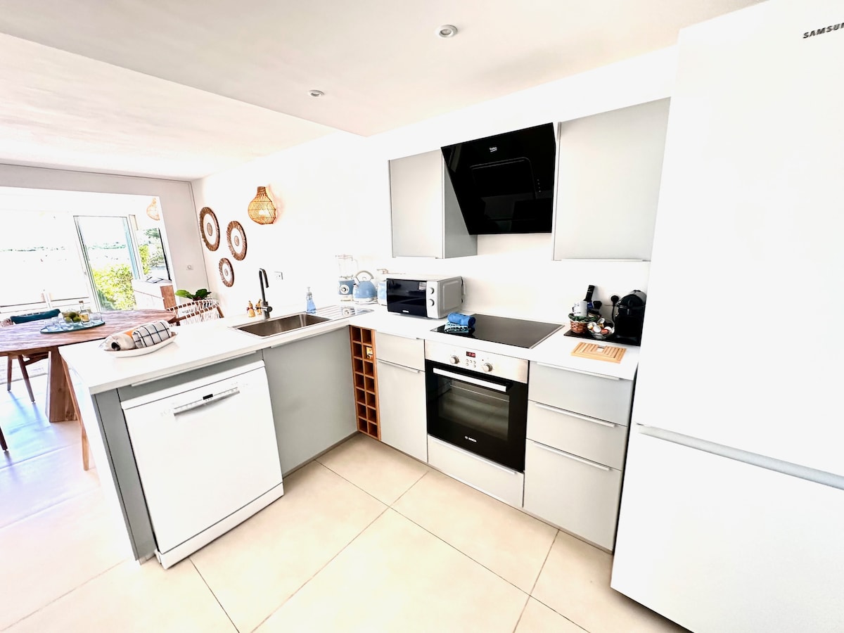 La Plage Bleue je prelijepa seoska kuća tik uz more, savršena za opuštajući odmor s porodicom ili prijateljima. Uživaćete u brojnim karakteristikama: • velika privatna terasa tik uz vodu • 4 osigurana bazena prikladna za djecu • 2 prostrane spavaće sobe • 2 kupatila • klima-uređaj u dnevnom boravku i spavaćim sobama • Wi-Fi od 100 Mbps • potpuno opremljena kuhinja sa mašinom za pranje veša, mašinom za pranje sudova i rernom • ograđeno prebivalište sa teniskim terenom i zajedničkim parkingom.