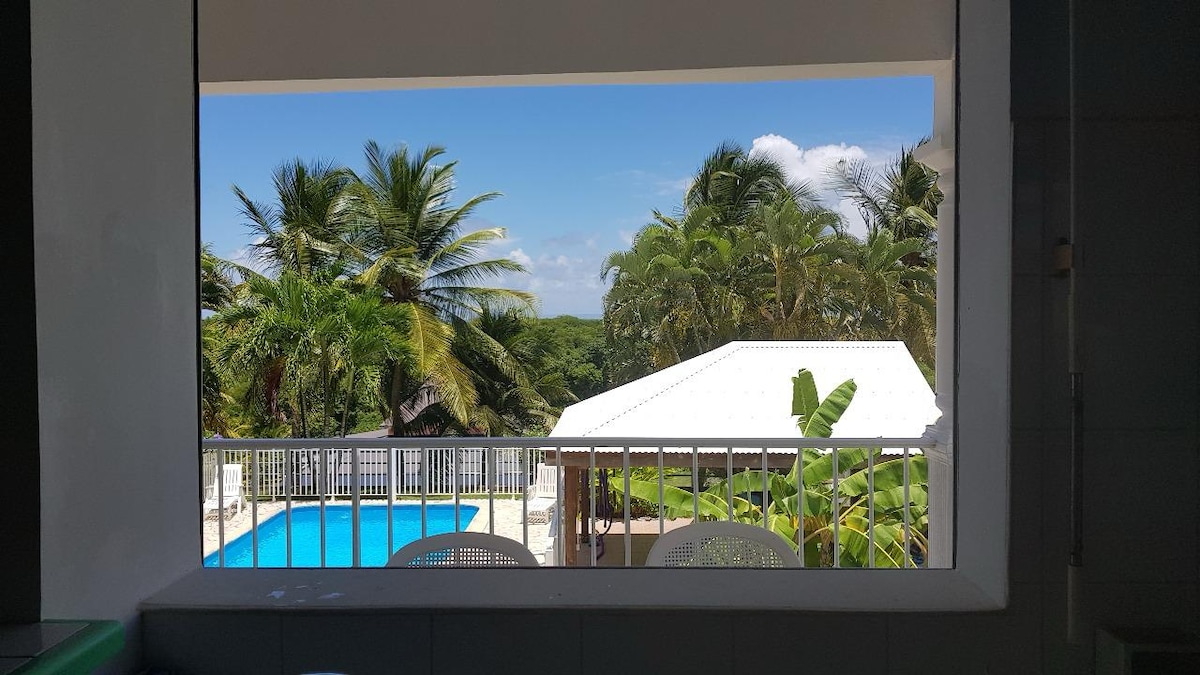 Šarmantan stan, udoban, sa profinjenim i elegantnim ukrasima, na 1. spratu naše vile, na šumovitom zemljištu u mirnom okruženju, na brdu između mora i planine. Predivan pogled na zaliv Senski zaliv. Savršeno za 4 osobe ili par sa djecom. 45 minuta od aerodroma, 5 minuta od pristaništa za Les Saintes i odlazak iza kulisa. 10 minuta od termalnih izvora Dolé, plaža Grand Anse (crni pijesak). 15 minuta od Le Karbet Folsa