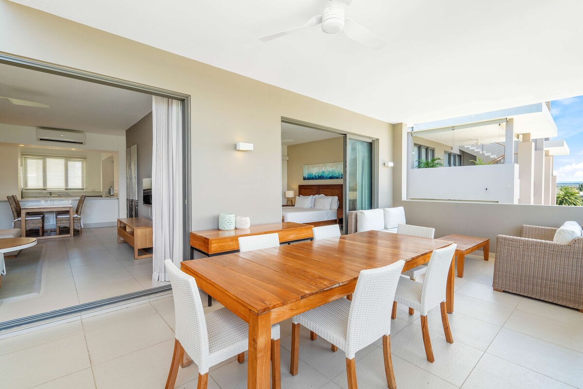 Dupleks stan na 2. i posljednjem spratu rezidencije koja je okrenuta prema plaži Bain Bœuf i ostrvu na uglu vidokruga . Idealno se nalazi na sjeveru Mauricijusa , 10 minuta od Grand Baie i 5 minuta od Cap Malheureux . Terasa sa dnevnim boravkom , trpezarijskim stolom i roštiljem na sredini palme sa koje se pruža pogled na more, kao i terasa za solarijum, uljepšava stan. Pristup moru udaljenom 50 metara, bazenu, teretani, zajedničkoj bašti i 2 vesla na raspolaganju .