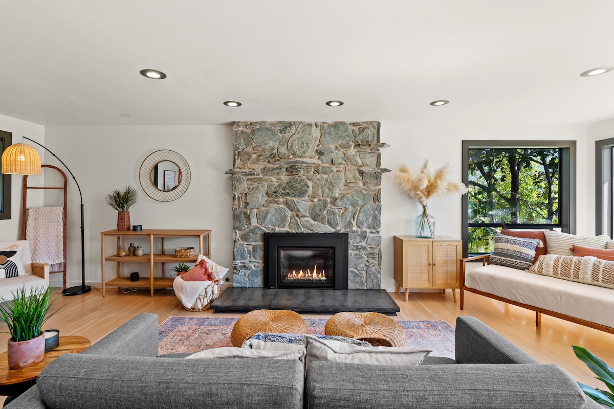 Uživajte u pogledu na baštu i planine iz „Kolibri Hejvena”, našeg svijetlog i udobnog apartmana u prizemlju prikladnog za rad - savršeno mjesto za odmor na ostrvu ili mjesto za avanture na Bejnbridžu i šire. Dvosobni prostor za nepušače ima sopstveni ulaz i unutrašnje dvorište, bračni krevet, kupatilo i prostrani dnevni boravak sa kaminom, MCM namještaj i mokri bar. Vlasnici žive na spratu. Psi težine <35 lbs su dobrodošli uz prethodno odobrenje i naknadu za kućne ljubimce od 50 $. Pošaljite nam upit o boravku od jednog noćenja.