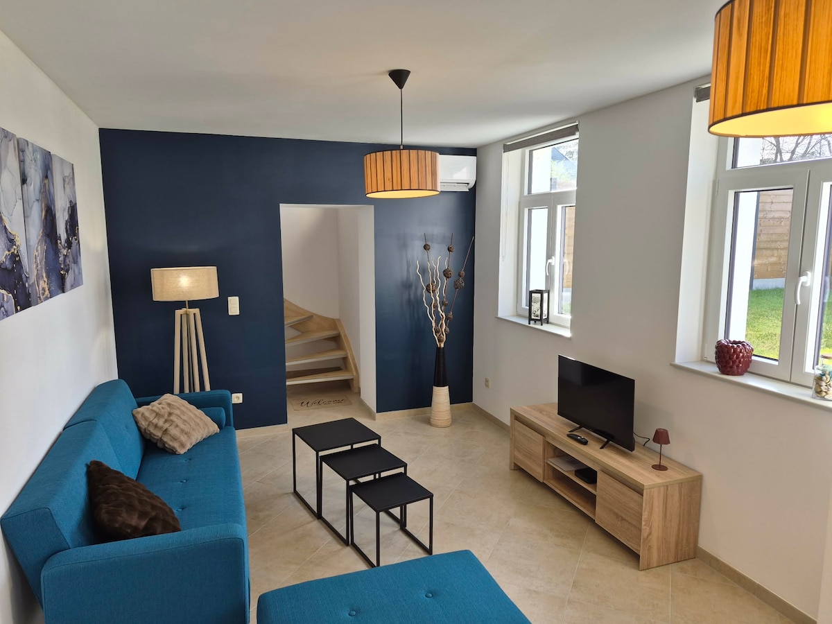 Naš dupleks u modernom stilu je upravo potpuno renoviran i potpuno opremljen. Smješten u centru grada, ostaje relativno mirno mjesto u zadnjem dijelu zgrade (prodavnica „créaflors” – dvorište). Naš smeštaj od 70 m² je organizovan na 2 nivoa sa svom potrebnom opremom: dnevni boravak, trpezarija, potpuno opremljena kuhinja, velika spavaća soba sa prostorom za čitanje, kupatilo sa kadom i tušem. Nalazi se u centru Kuvina sa besplatnim parkingom pored.