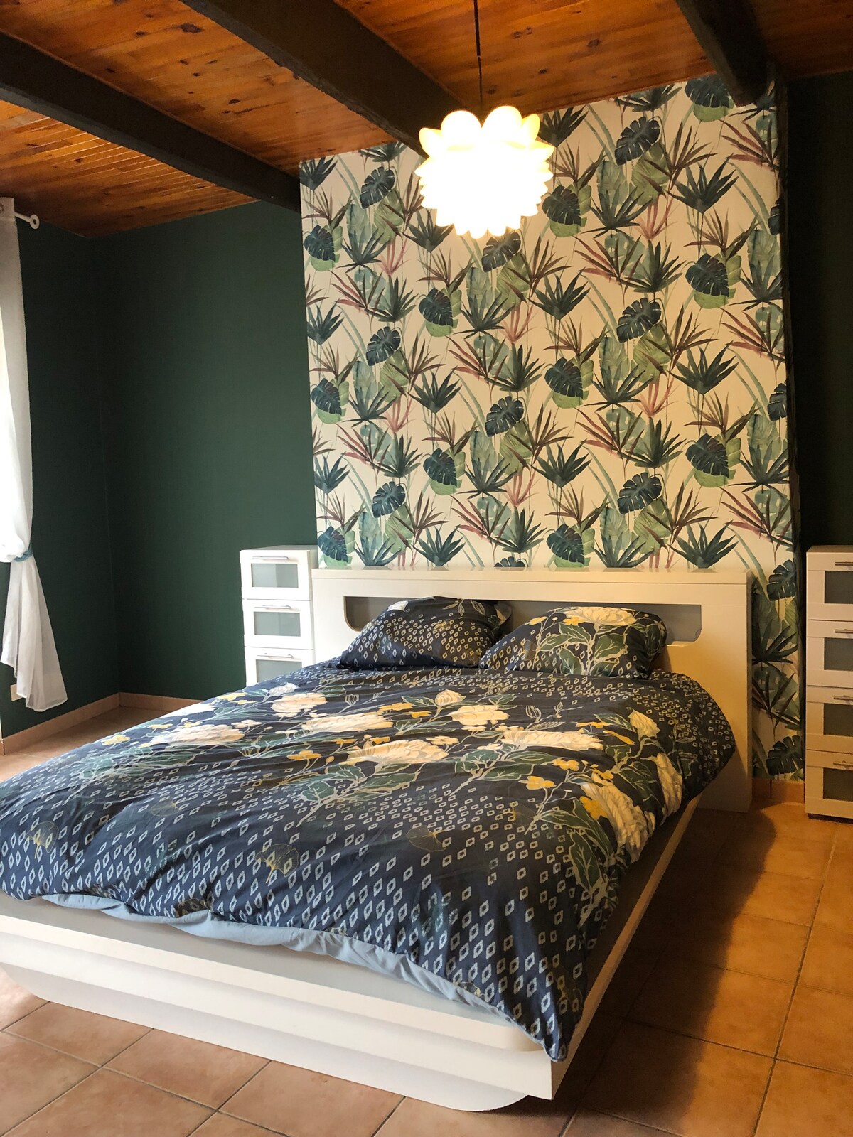 Privatna soba, sa klima-uređajem, u gornjem dijelu otvorenog potkrovlja u centru grada Montélimar 5-6 minuta hoda od željezničke stanice. Soba ima krevet od 1 Luja XV u 140, krevet na brodu u 120 i krevet Luja XVI u 90. 100% privatno kupatilo sa velikim tušem, umivaonikom i WC-om. Imajte na umu da se radi o OTVORENOM POTKROVLJU. Vlasnik je 39-godišnji autor koji živi u prizemlju i spava u prizemlju.