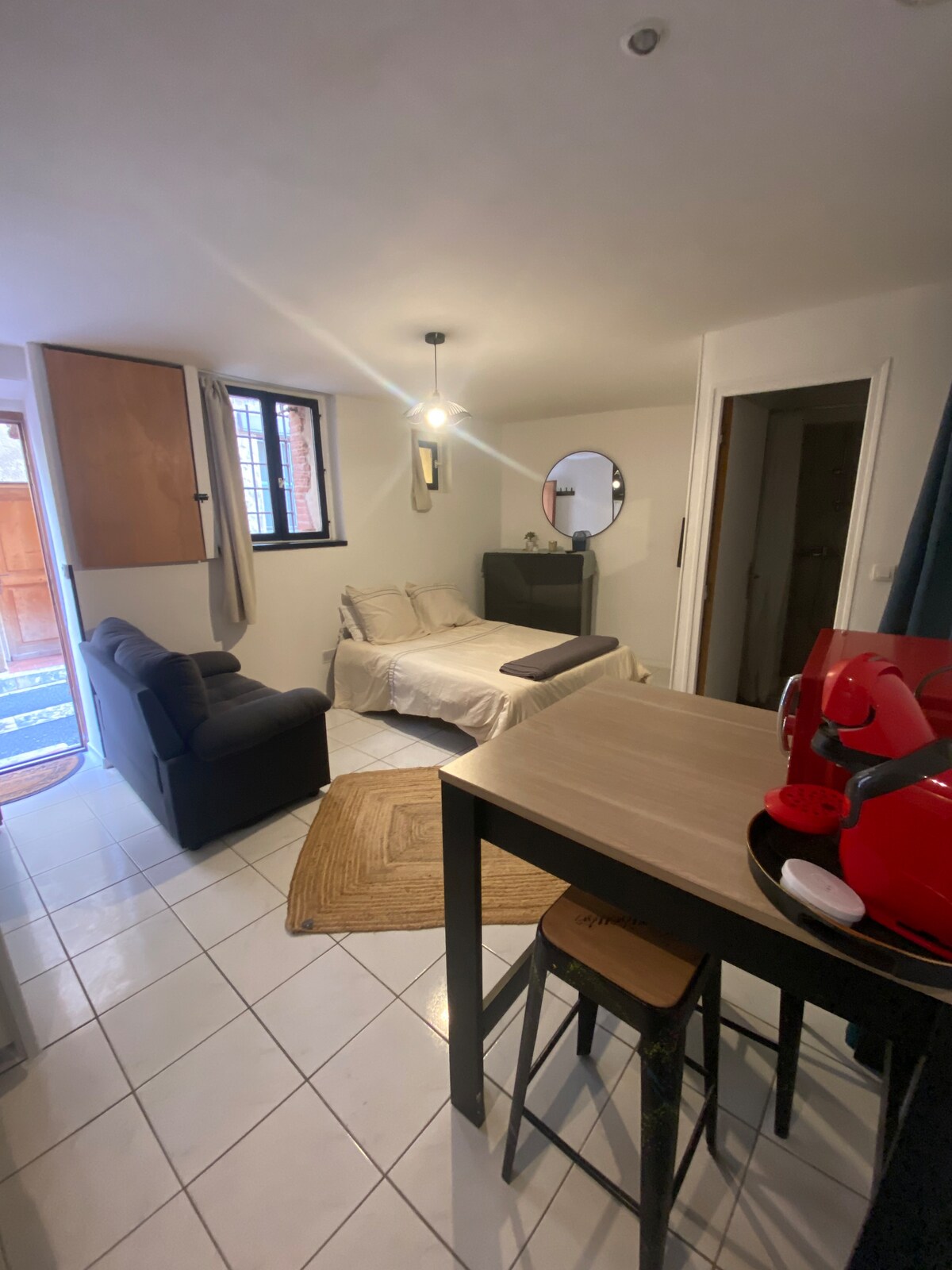 Klimatizovani stan, 40 m2 renoviran 2018. godine, jednospratan , udoban, vrlo svijetao, tih. Nalazi se u šarmantnom selu u blizini Perpinjana. Objekat se sastoji od: - Potpuno opremljena kuhinja (frižider-zamrzivač, rerna, aspirator, mašina za sudove, mikrotalasna rerna, aparat za kafu, kuvalo za vodu...) Dvosjed na razvlačenje, TV - Hi-Speed WiFi - 1 spavaća soba sa 1 krevetom(140x190), velika garderoba - 1 kupatilo sa tuš kabinom, umivaonikom, WC šoljom, mašinom za veš, fen za kosu Besplatan privatni parking